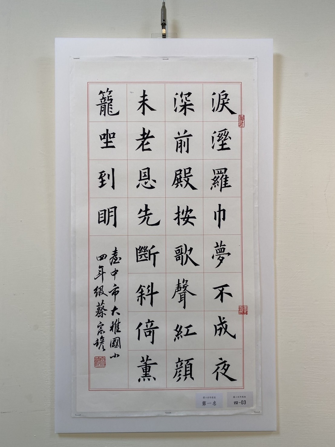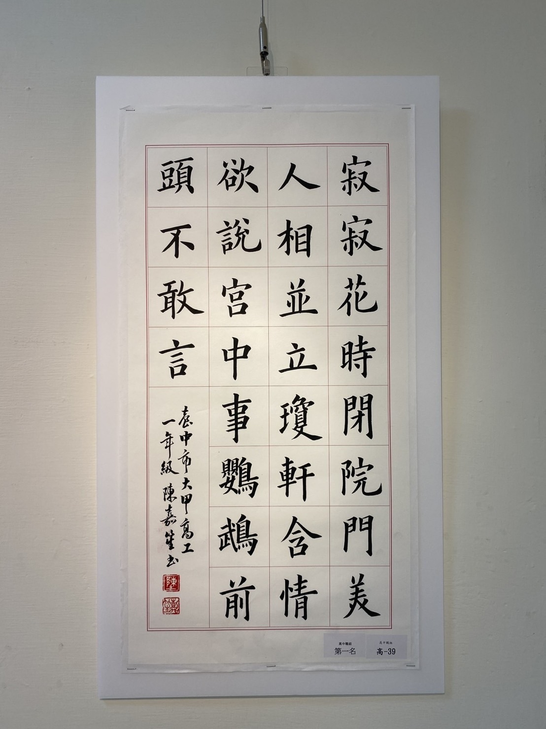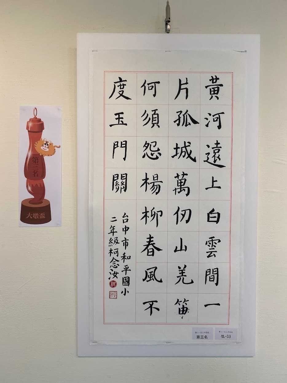 文化局指出,從今年得獎者中,可看出書法教育從小扎根,持續在各學習階段陪伴孩子精進成長。大雅國小四年級蔡宗諺同學從108年開始參加大墩盃,今年已蟬聯4年奪冠;國中組第一的東山國中黃子庭同學去年也獲六年級組第一;以《宮中詞》獲得高中職組首獎的大甲高工一年級陳嘉笙同學,曾獲109年國中組第一名,睽違2年再次參賽仍奪首獎。和平區和平國小全校雖僅45名學生,書法老師柯潮政指導6名學生參賽,4名學生獲獎,其中2位更獲第三名的殊榮。