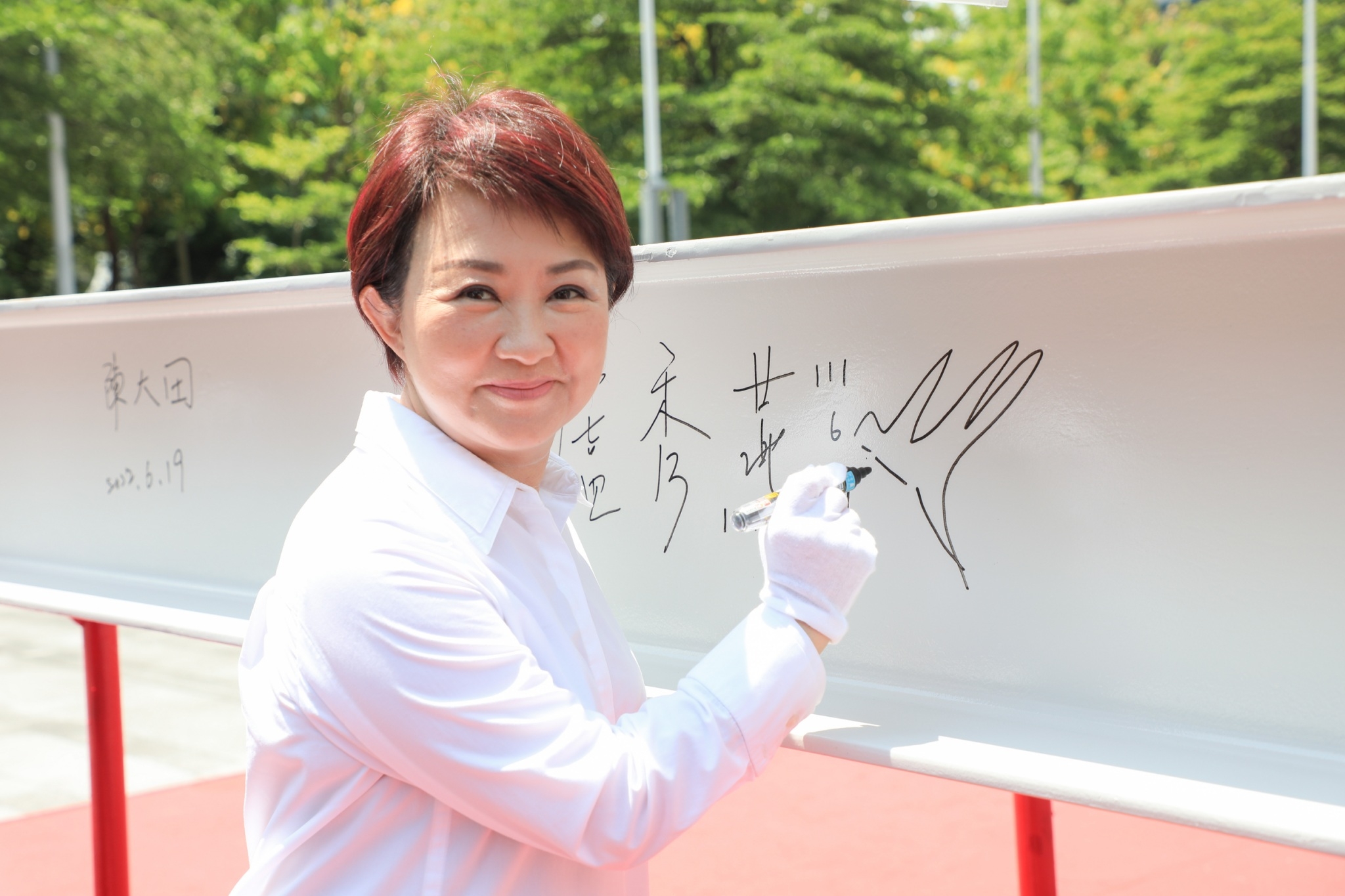 今日由盧市長、經發局長張峯源、建設局長陳大田、市議員劉士州在梁柱上簽名,黃馨慧議員服務處也派代表共襄盛舉。盧市長表示,每個世界重要的經貿中心,都有一座國際級的會展中心,台中人等了20年,她上任後排除萬難拍板動工,在大家努力下工程相當順利,預計今、明兩年將完成整個硬體結構,台中國際會展中心會是台中工商業希望、市民的驕傲,邀請、歡迎所有市民朋友一起簽梁。