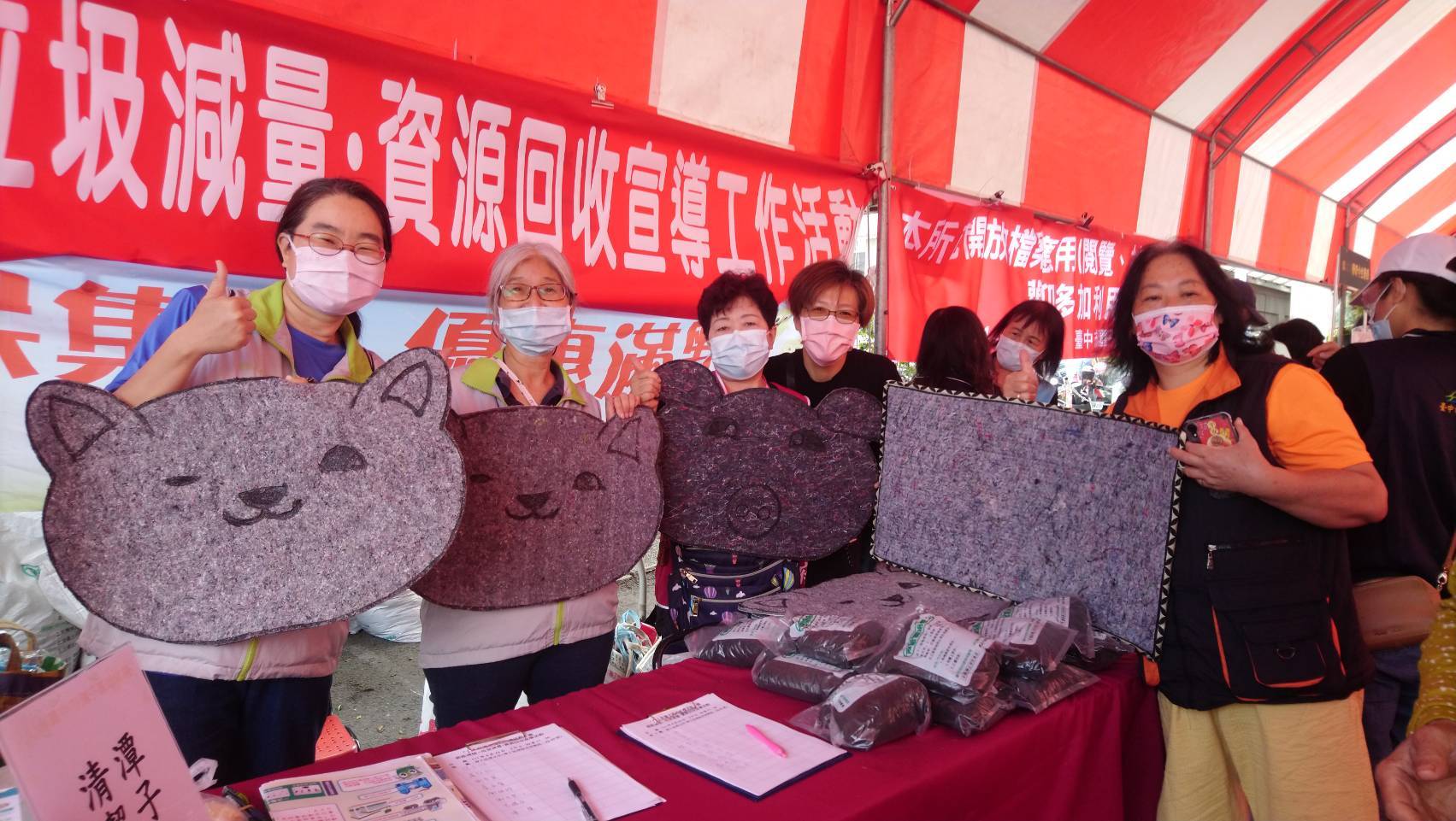 廢棄物也可化身為寶!台中市潭子區清潔隊發揮巧思,將廢棄床墊棉布變身可愛動物防疫消毒毯,既可將鞋底污泥刮刷乾淨,又可把病毒阻隔於家門之外,區隊日前透過資源回收兌換活動,80片消毒毯在短短一小時內兌換一空,大獲好評;另外,北屯西清潔隊4月中也舉辦廢棄床墊內襯(椰子纖維墊)兌換活動,光一天就兌換出約950公斤的椰子纖維墊,還有民眾專程從外埔開車來載。環保局說,資源回收再利用,做環保、愛地球,一點都不難。