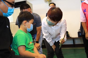 盧市長到場後一一問候家長、工作人員,關心詢問孩童施打後狀況,並向學童說明施打後不是「無敵鐵金剛」,仍需持續落實防疫措施。她說,今日快打站接種井然有序、秩序相當良好。在場陪同施打的家長也紛紛表示,「非常方便」、「動線安排很好」、「施打環境舒適」等。