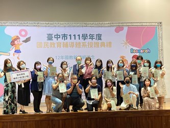台中市政府教育局今(7)日在慈明高中舉辦111學年度「國民教育輔導體系」輔導員授證典禮,共計400多位優秀教師參與授證,未來將深入校園為全市教師提供服務,協助教師專業成長,並在7月推出持續出版《素養導向教學設計參考手冊(第四冊)》,提供教師精進教學的參考,共同打造台中市校園好師資、好課程。