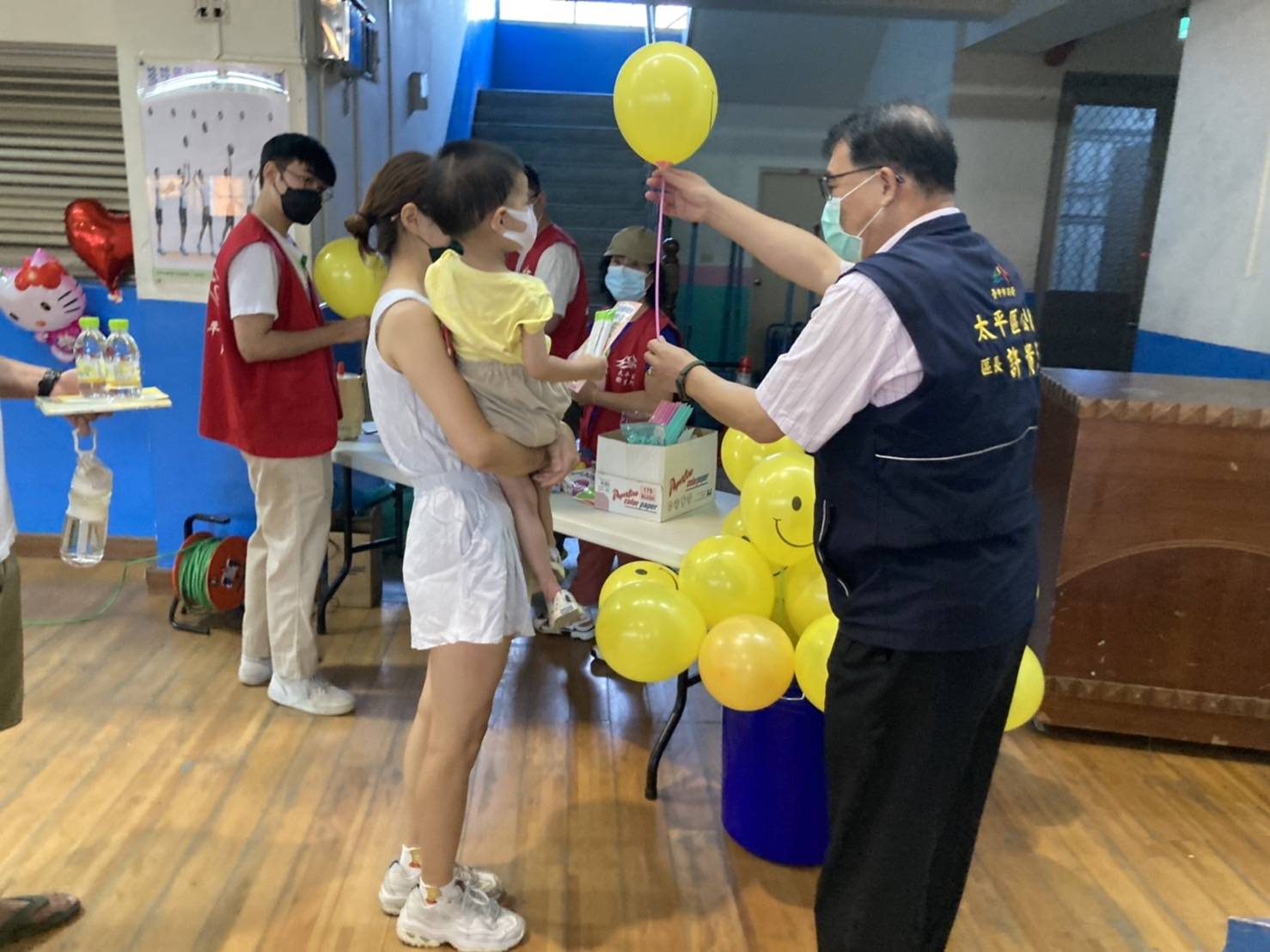 市府表示,台中市快打站除替孩子施打疫苗外,更因親子族群的屬性特殊,市長盧秀燕特別指示,優化空間氛圍,此舉成功安撫現場的緊張感,比如南屯區慈濟台中靜思堂的快打站,有「穿山甲」吉祥物到場帶動歡樂氣氛,發送七彩氣球,孩子們跑去抱著吉祥物,家長忙著拍照,瞬間變打卡見面會。其他各站也有「哄嬰法寶」,部分醫護、工作人員施打疫苗時,請孩子挑選小禮物,包含糖果、貼紙、小玩具、七彩氣球等,成功轉移注意力,讓哭聲變笑聲,加上卡通、音樂的播放,施打站變身「遊樂園」。