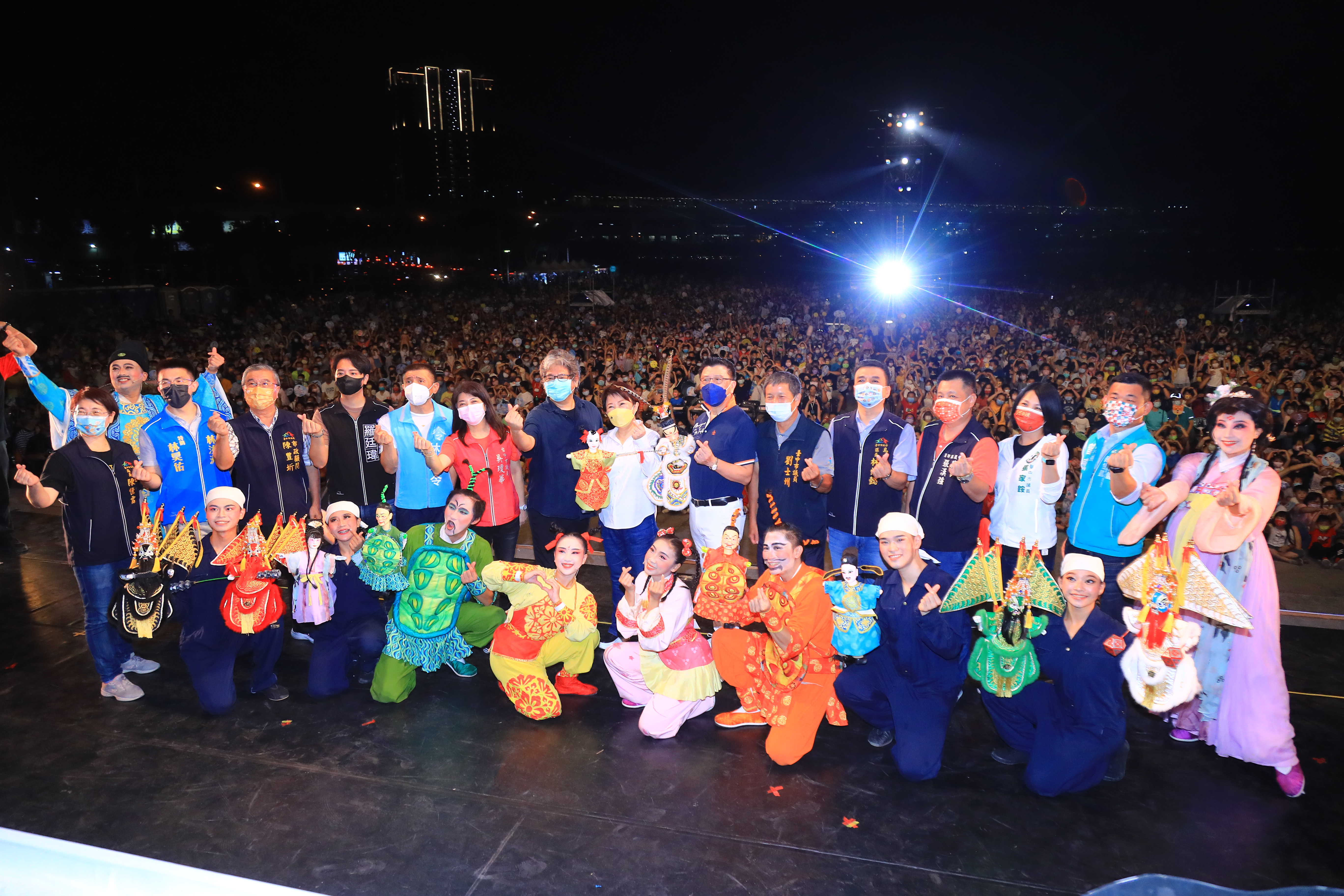 紙風車劇團創團30週年新作《哪吒鬧龍宮》,戶外首演從台中出發!台中市政府邀請紙風車劇團,今(20)晚在高鐵台中站前廣場演出,市長盧秀燕到場和民眾欣賞精采演出,她特別感謝紙風車劇團每次有大型創作,總是第一個與台中市民分享,帶給市民歡樂,也祝福所有大小朋友都有個美好的夜晚。