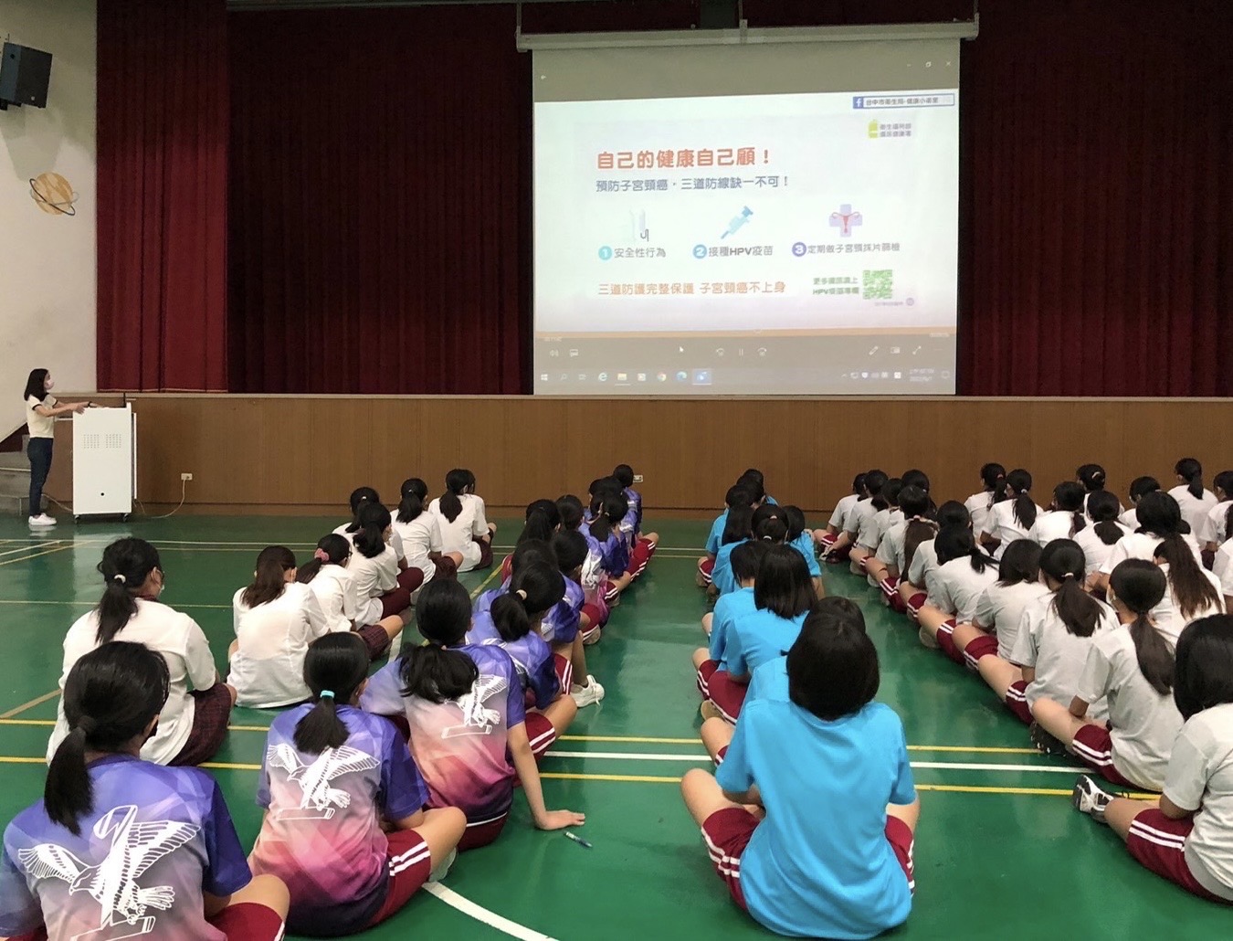 曾局長表示,為讓學生更瞭解HPV疫苗及保健相關議題,除了進校園提供HPV接種服務,衛生局特別製作宣導影片,內容包括認識HPV疫苗、安全性行為、健康飲食、電子煙防制及檳榔危害健康防制等,希望透過衛教宣導影片提升國中男、女生健康知能。