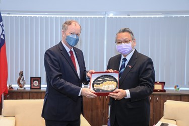 紐西蘭商工辦事處馬嘉博(Mark Pearson)代表一行人,昨(21)日拜會台中市政府,此為馬代表首次到訪市府,雙方就教育、原住民、消防救災等議題進行意見交流,馬代表也尋求未來共同合作的機會。副市長令狐榮達除表示歡迎,也盼後疫情時代,各項國際經貿、文化活動復甦之際,台紐雙方能推動更多交流。