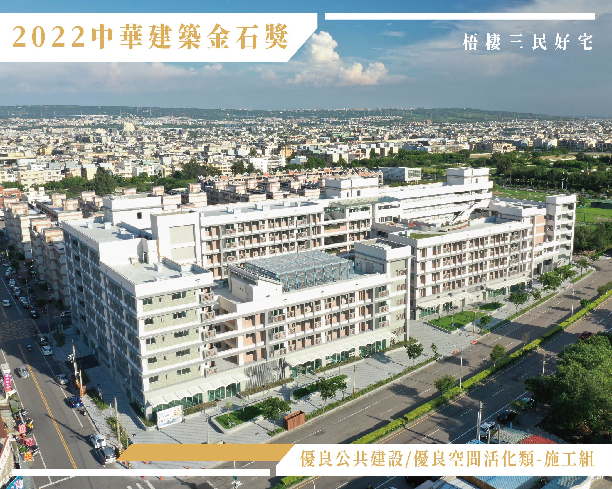 台中好宅近期捷報不斷,近日才剛獲「2022年國家卓越建設獎」及「2022建築園冶獎」公共建築景觀類等大獎肯定,今(28) 日「梧棲三民好宅」及「東區尚武好宅」又榮獲第30屆「中華建築金石獎」優良公共建設/優良空間活化類-施工組及規劃組金石獎的殊榮,其中「梧棲三民好宅」更獲該組金石首獎肯定。住宅處感謝評審及協會肯定,也將持續精進居住空間及友善公共環境品質,打造更多台中好宅,讓台中市成為宜居、移居的城市。