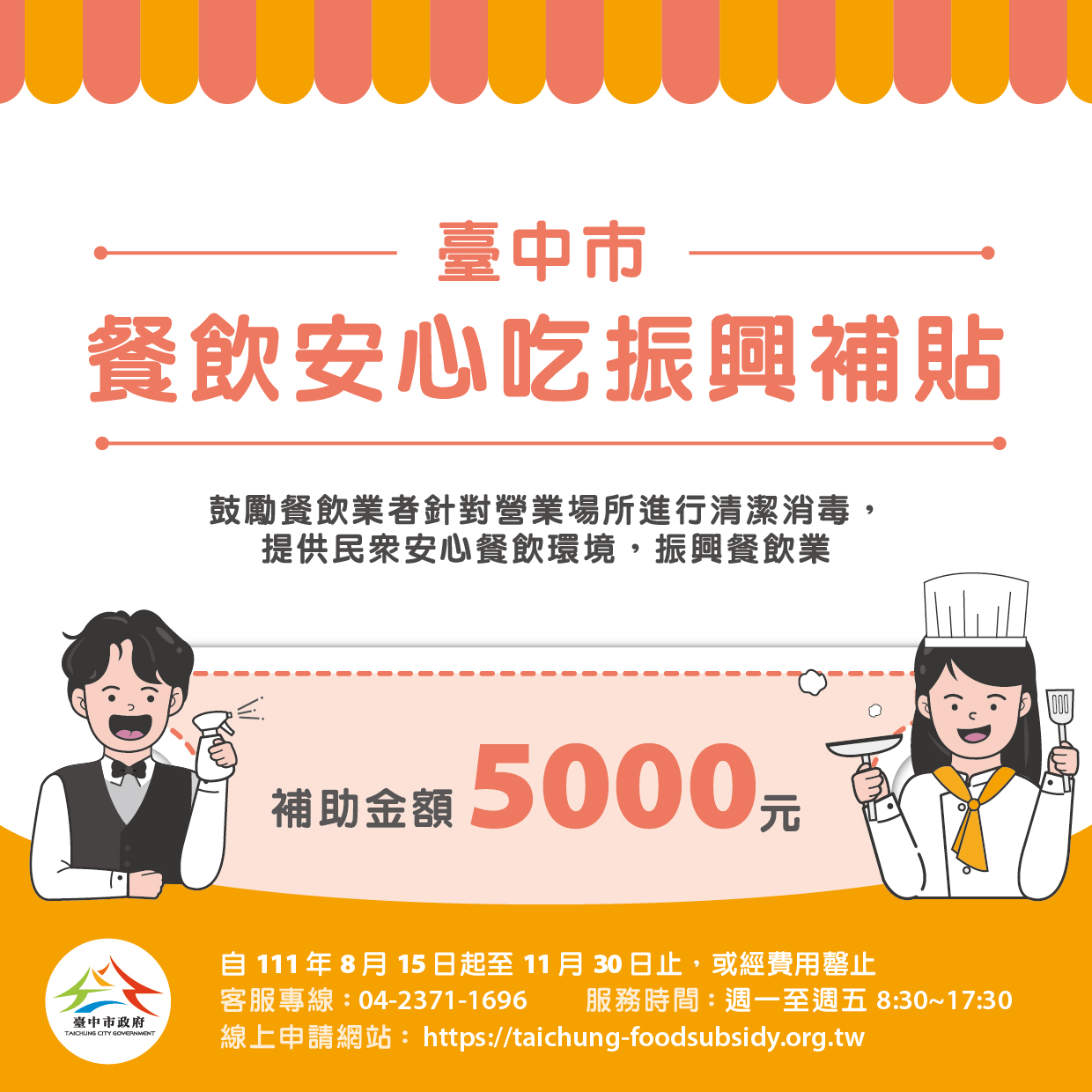 拍照上傳即可申請! 中市餐飲補貼5千元延長收件至11/30