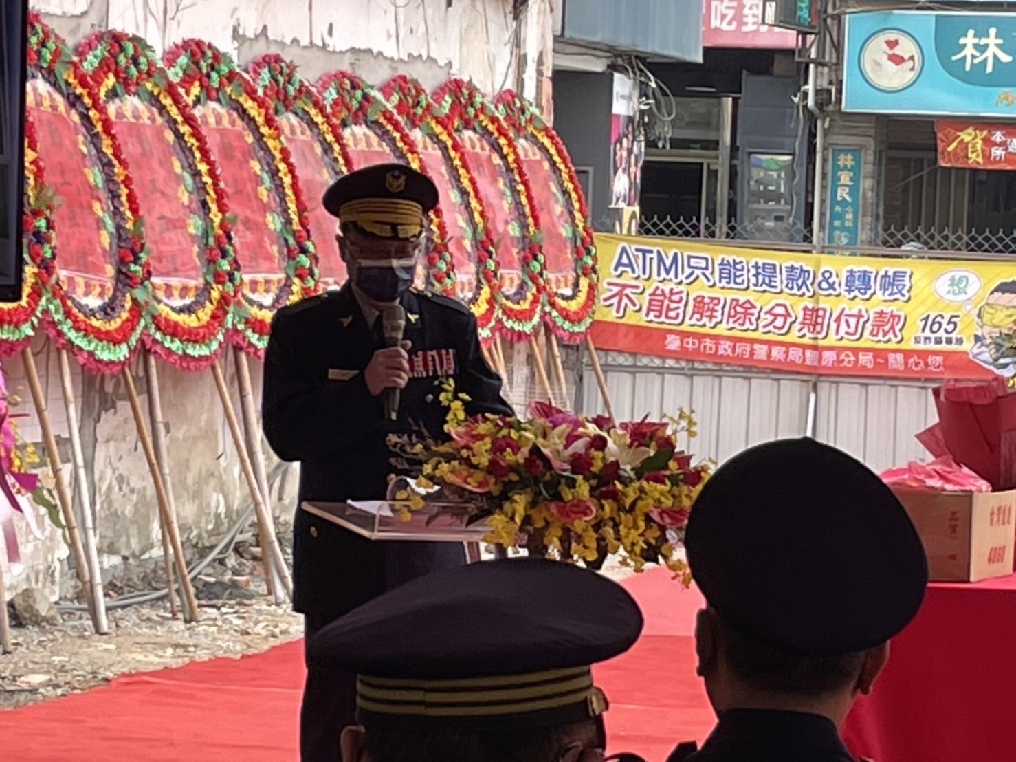 今日開工典禮,包含盧市長、市議員陳本添、陳清龍、謝志忠、張瀞分、王朝坤、警察局長蔡蒼柏、副局長鄧學鑫、魏慶賢、高建源、市政顧問陳秋煌、豐原區長洪峰明、多位在地里長及台中市議會副議長顏莉敏代表均到場。(10/7*12)*警察局