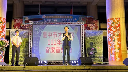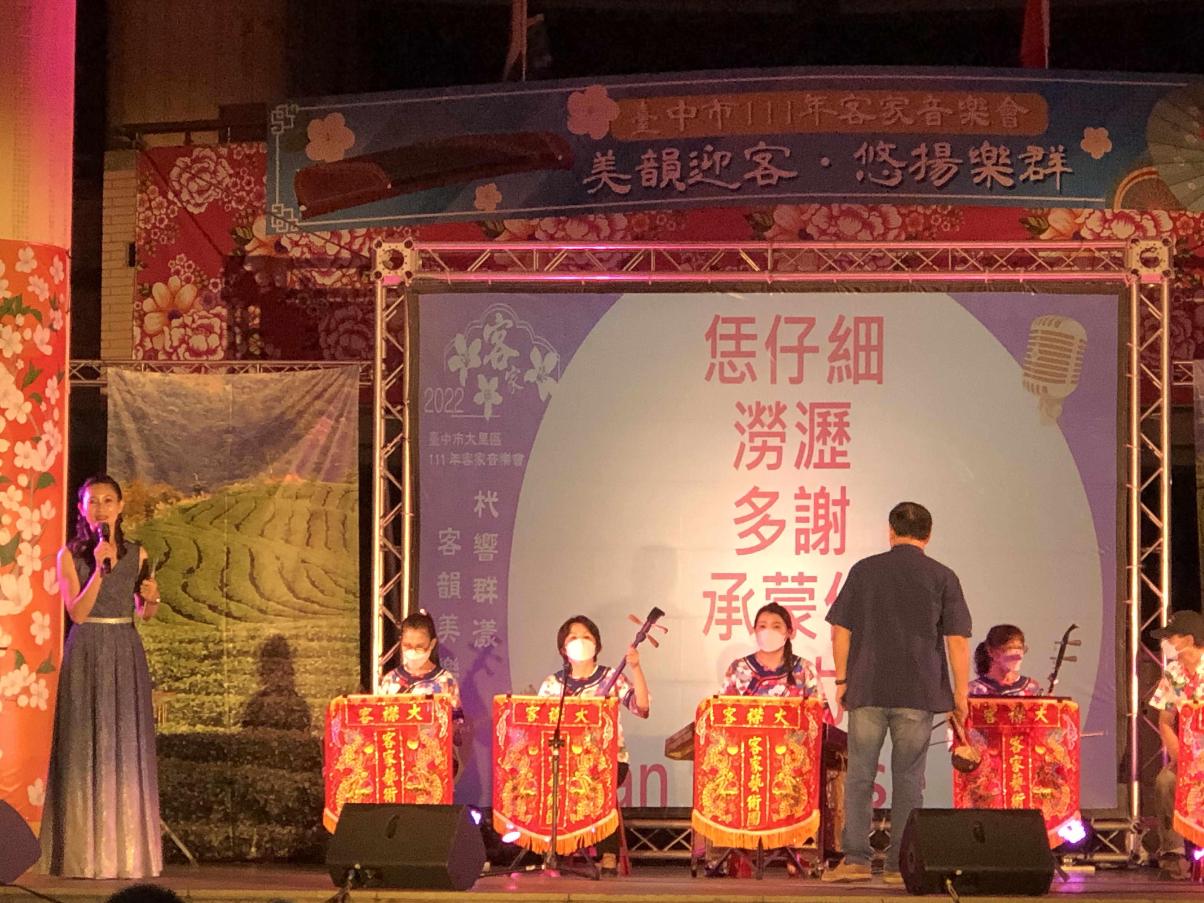 台中市政府客家事務委員會為促進屯區客家傳統音樂發展,與大里區公所合作,昨(14)日晚間於大里區美群國民小學前庭舉辦「111年客家音樂會~美韻迎客.悠揚樂群」活動,落實音樂在地化,促進客家文化推廣及傳承,市府客委會主委江俊龍表示,睽違兩年的大里客家音樂會,終在疫情漸穩後,能再度與區公所合作,帶給市民朋友最膾炙人口的客家音樂。