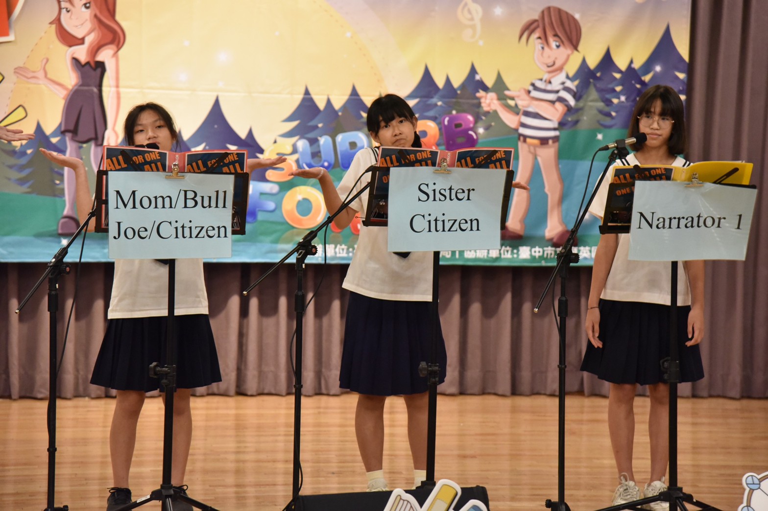 參賽學校指導老師說,參加台中市英語讀者劇場已累積很多經驗,秉持讓每一個學生發光發熱的態度,期許從比賽中提升學生英語文讀與說的能力,並透過聲音詮釋文字、呈現劇本內涵。