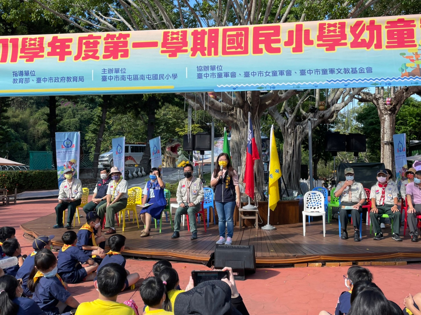 營主任南屯區南屯國小校長蔡承憲說,雖然疫情的考驗還在,但只要做好個人的防疫措施,勤洗手、戴口罩,大家可以參加各種活動;感謝教育局恢復舉辦幼童軍聯團活動,展現持續推動童軍教育的用心與堅持,希望幼童軍們盡情享受在疫情下得來不易的體驗探涉之旅。(11/9*7)*教育局