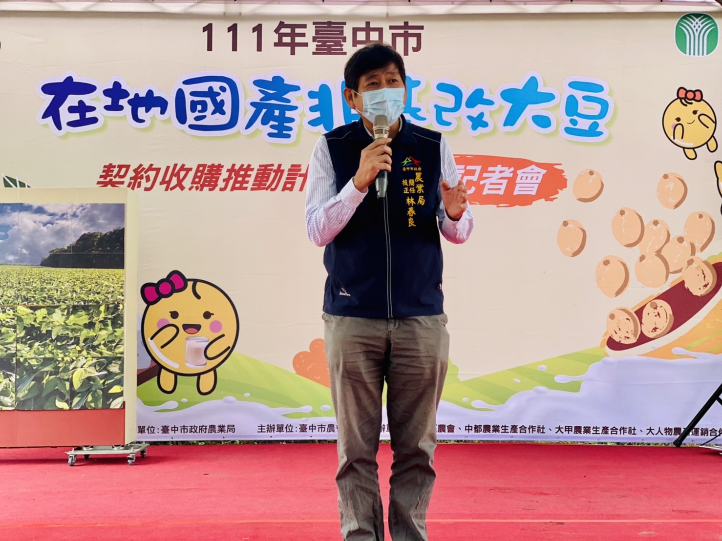農業局說明,今年非基因改造大豆契作面積達150公頃,較去年70公頃增加80公頃,預估總產量約300公噸,為確保農民收益,保證田邊收購價每公斤30元,另補助契作主體大豆每公斤5元的行銷費用,以利後續行銷,提昇國產大豆競爭力,讓更多人認識及採購台中市生產安全優質非基因改造大豆。