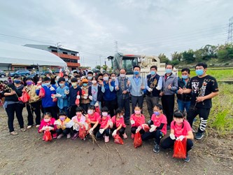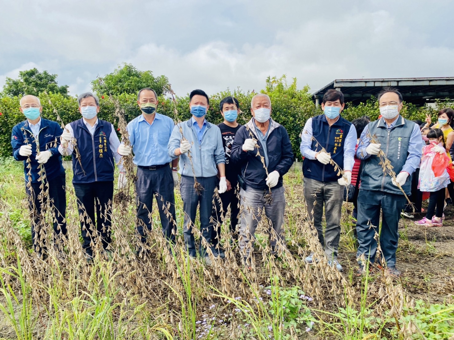 台中市政府農業局為活化農地,配合中央推動轉(契)作及稻作4選3政策,持續輔導以契約收購方式鼓勵農民二期稻作轉作非基因改造大豆,並以源頭管控方式,確保在地生產、安全高品質,今年契作大豆已於11月開始採收,今(24)日於外埔區契作田區舉辦大豆採收記者會,宣告採收期正式開始,契作主體已開發多種大豆產品,歡迎民眾多多選購食用。