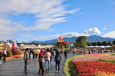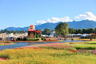 台中國際花毯節睽違一年後回歸,今(3)日在新社區種苗改良繁殖場二苗圃登場,今年主題為「心花開」,以20萬株、超過19種繽紛花草點綴大片主題花毯,還有療癒小精靈、以南法普羅旺斯風格打造的市集,開幕首日上午就吸引上千名遊客前往拍照打卡。「不用出國就像到南法!」市長盧秀燕表示,歡迎民眾來新社體驗類出國旅遊,感受「台灣的普羅旺斯」之美。