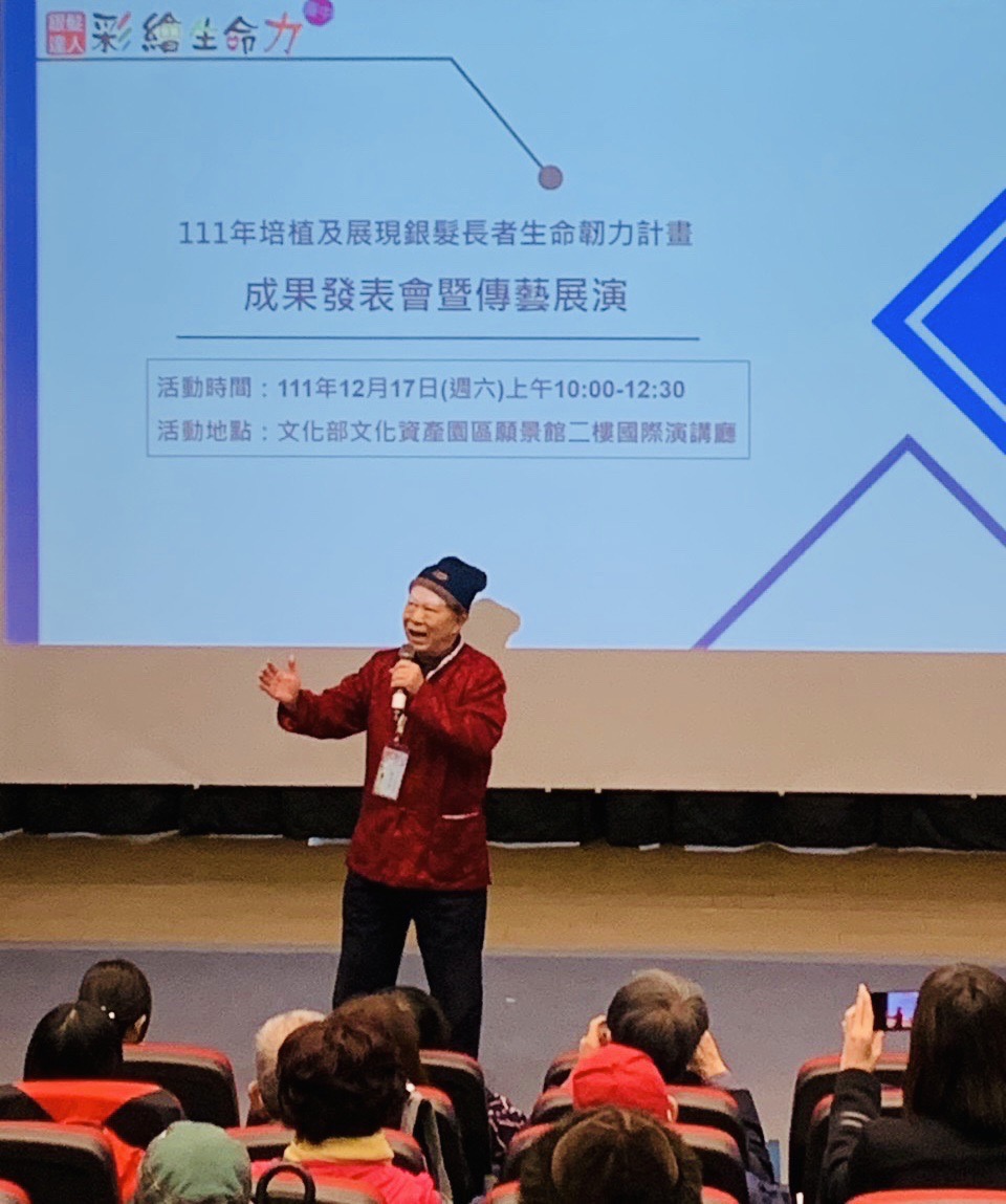 不畏寒流,台中市政府社會局今(17)日於文化資產園區願景館舉行「111年銀髮長者生命韌力計畫」成果發表會,由計畫培訓的銀髮達人王維梅首挑大樑擔任主持人。社會局副局長陳坤皇特地出席鼓勵達人前輩們不畏天寒的熱情,並表示,看見達人們都健康開心的參與展演,現場瞬間暖起來,感謝達人們參與方案奉獻智慧,為自己的生命更添光彩。
