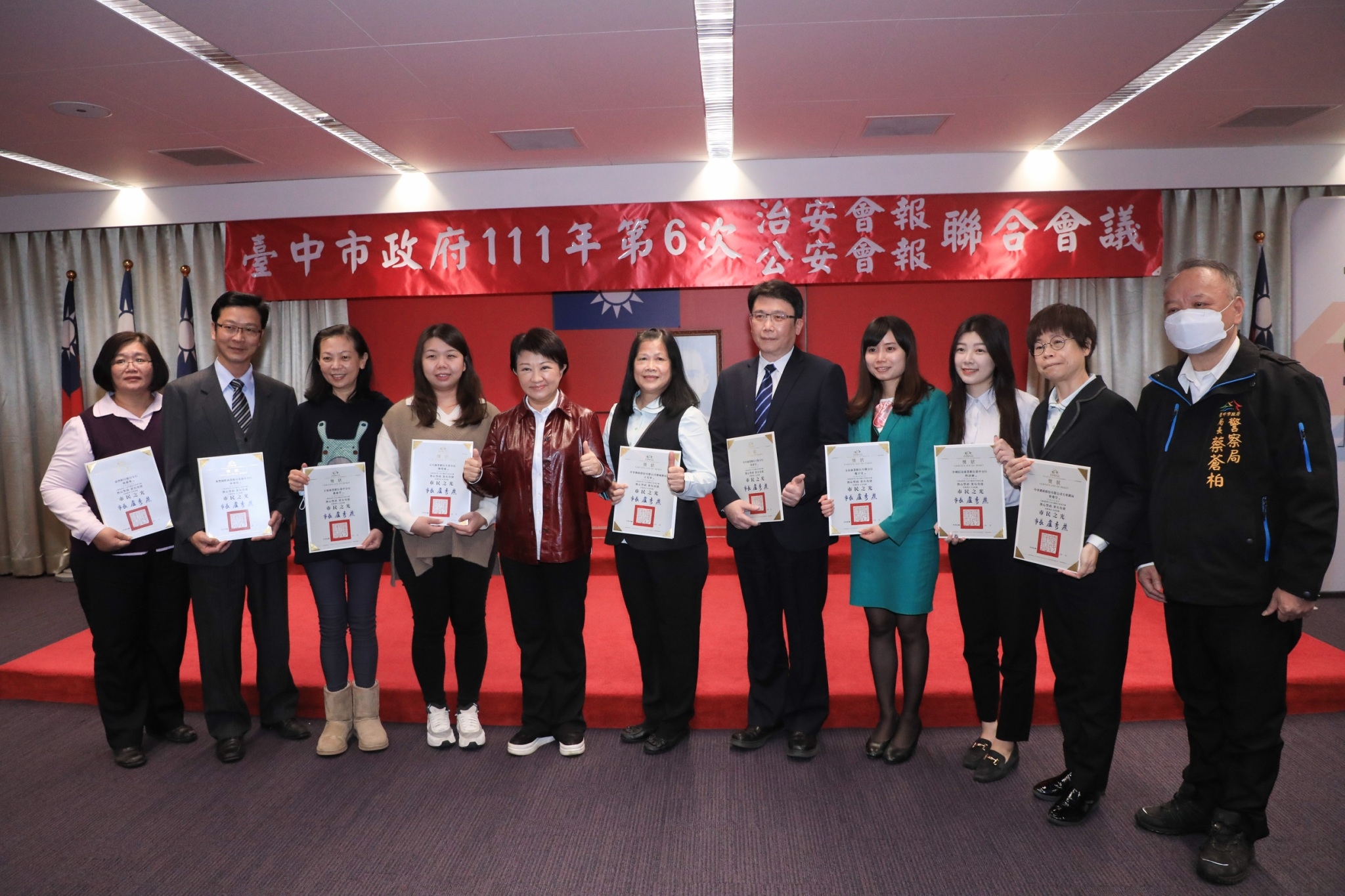台中市政府組成「台中打詐隊」積極攔阻詐騙,從今年1月統計至12月份,總計攔下853詐騙案件,阻詐金額高達4億9,461萬多,將近5億元,成效斐然!市長盧秀燕今日在治安會報中,頒獎表揚9名成功攔阻民眾避免被騙金額達200萬元的行員,2位受害民眾也到場獻花,感謝行員的熱心。盧市長表示,公私協力合作很重要,金融機關的同仁發現民眾領款受到詐騙及時攔詐,避免民眾損失受害,她代表市府感謝他們的見義勇為。