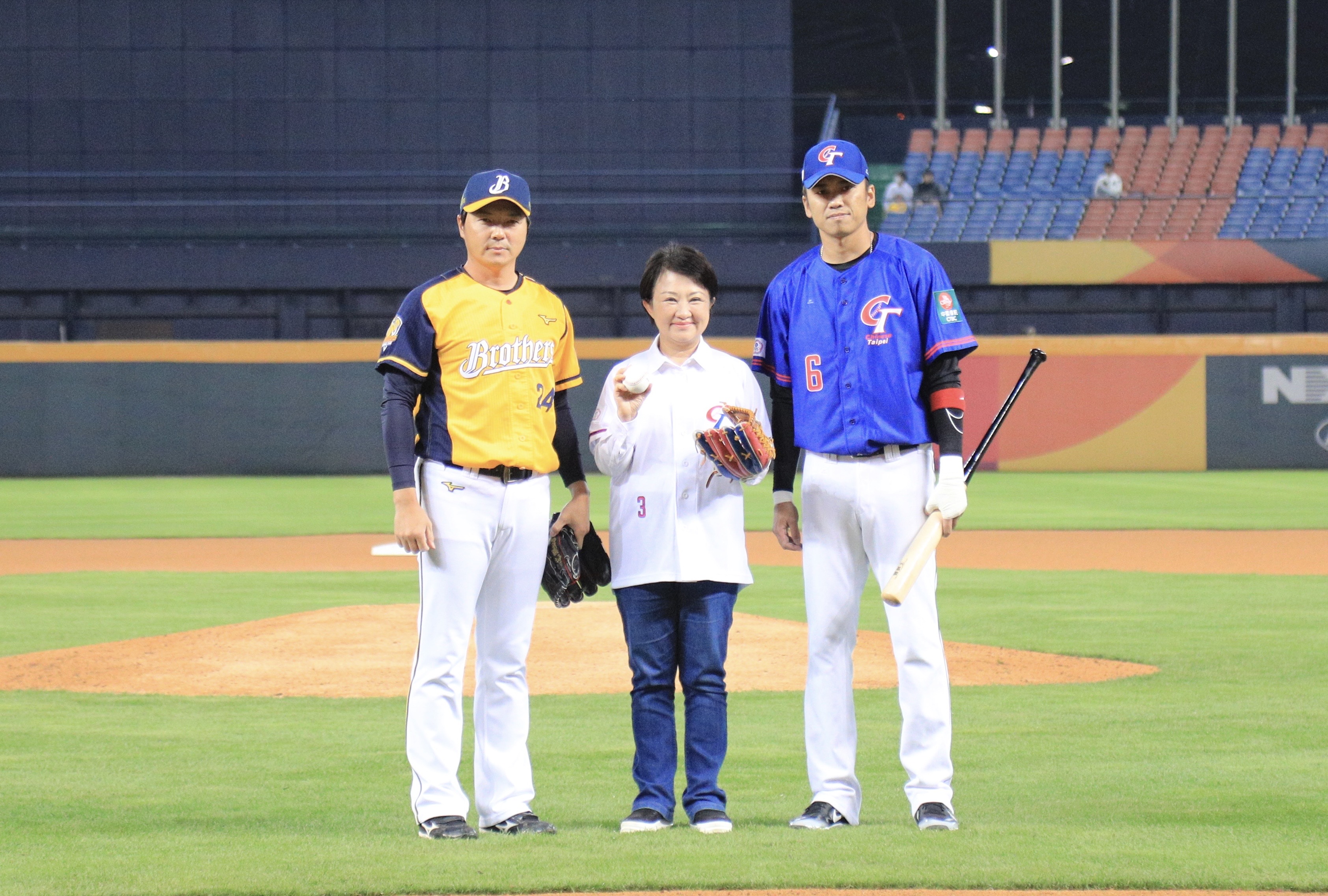 盧市長開球-中華隊隊長王威晨打擊-中信兄弟總教練林威助擔任捕手