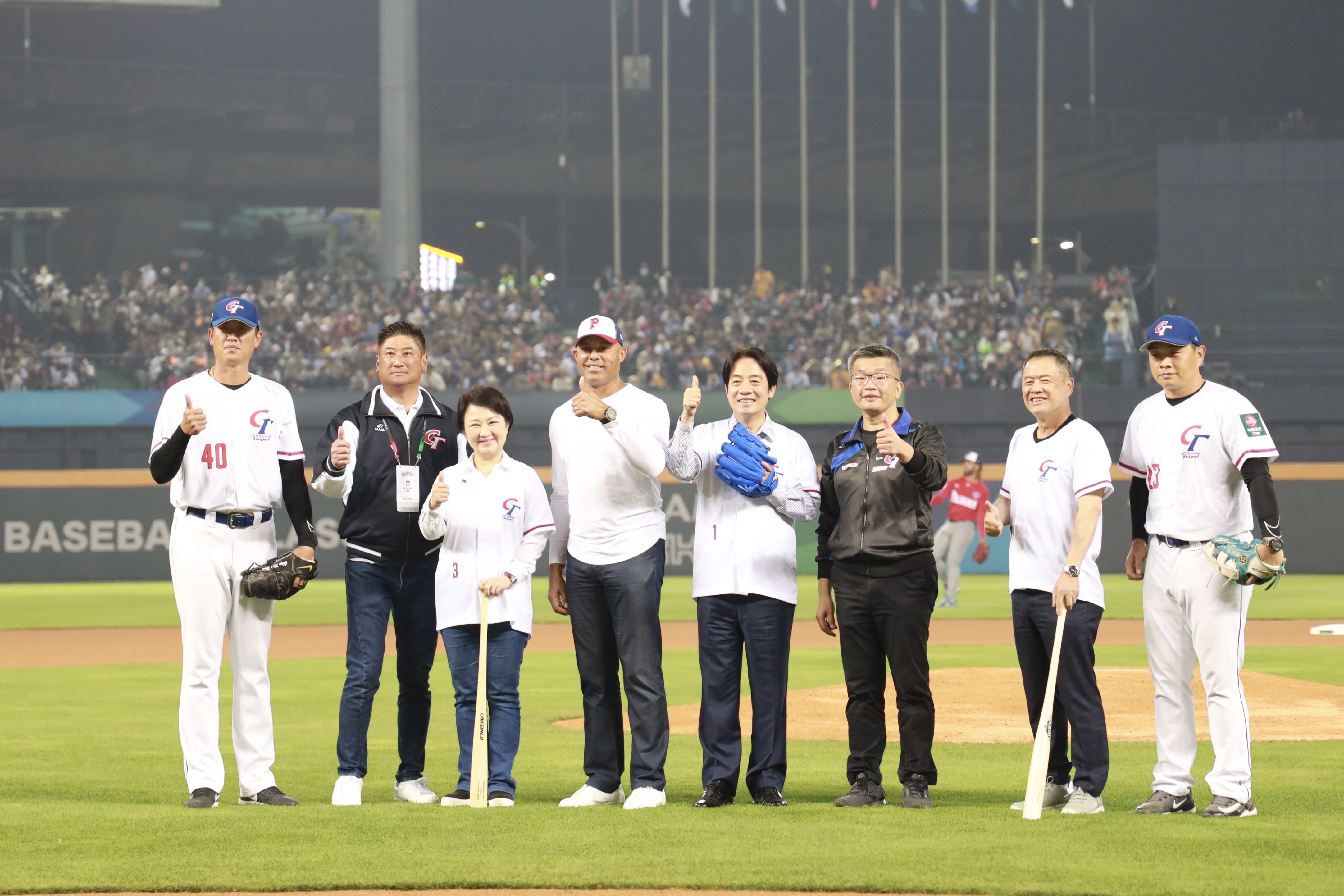 府層首長與各局處首長皆穿上球衣-背後繡上各自名字與編號-展現辦好經典賽的決心-為中華隊加油