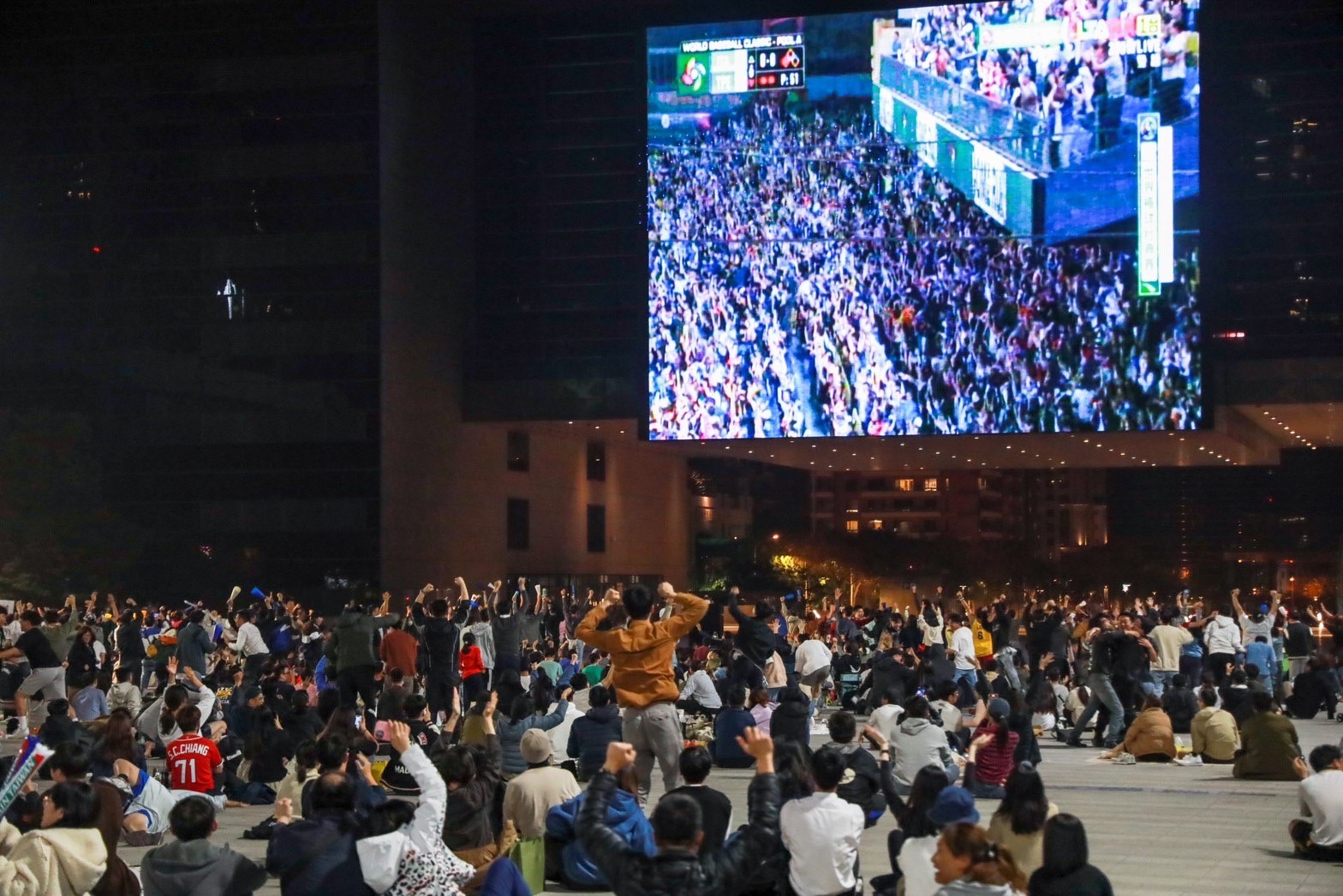 中市府前廣場湧5千人看直播熱血加油