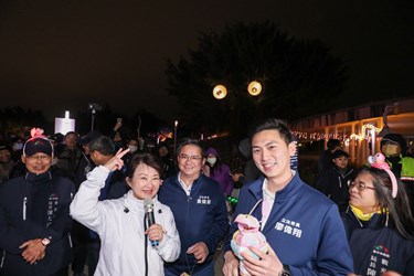 盧市長表示,中台灣的元宵燈會是全台最大、最精彩的燈會,擁有全台最廣闊的公園,讓人一整天都逛不完!她笑稱這邊可以找出500個打卡景點,主燈每半個小時一次展演一次,「全台若有更美的女神,歡迎來比拚!」盧市長說,在這寒冷的天氣中,只要與愛人或家人一起賞燈,便能忘卻寒意,享受溫馨時光。她也誠摯邀請大家攜手與摯愛的人一起欣賞燈會,感情升溫,共同迎接新年的快樂與蛇年大發!