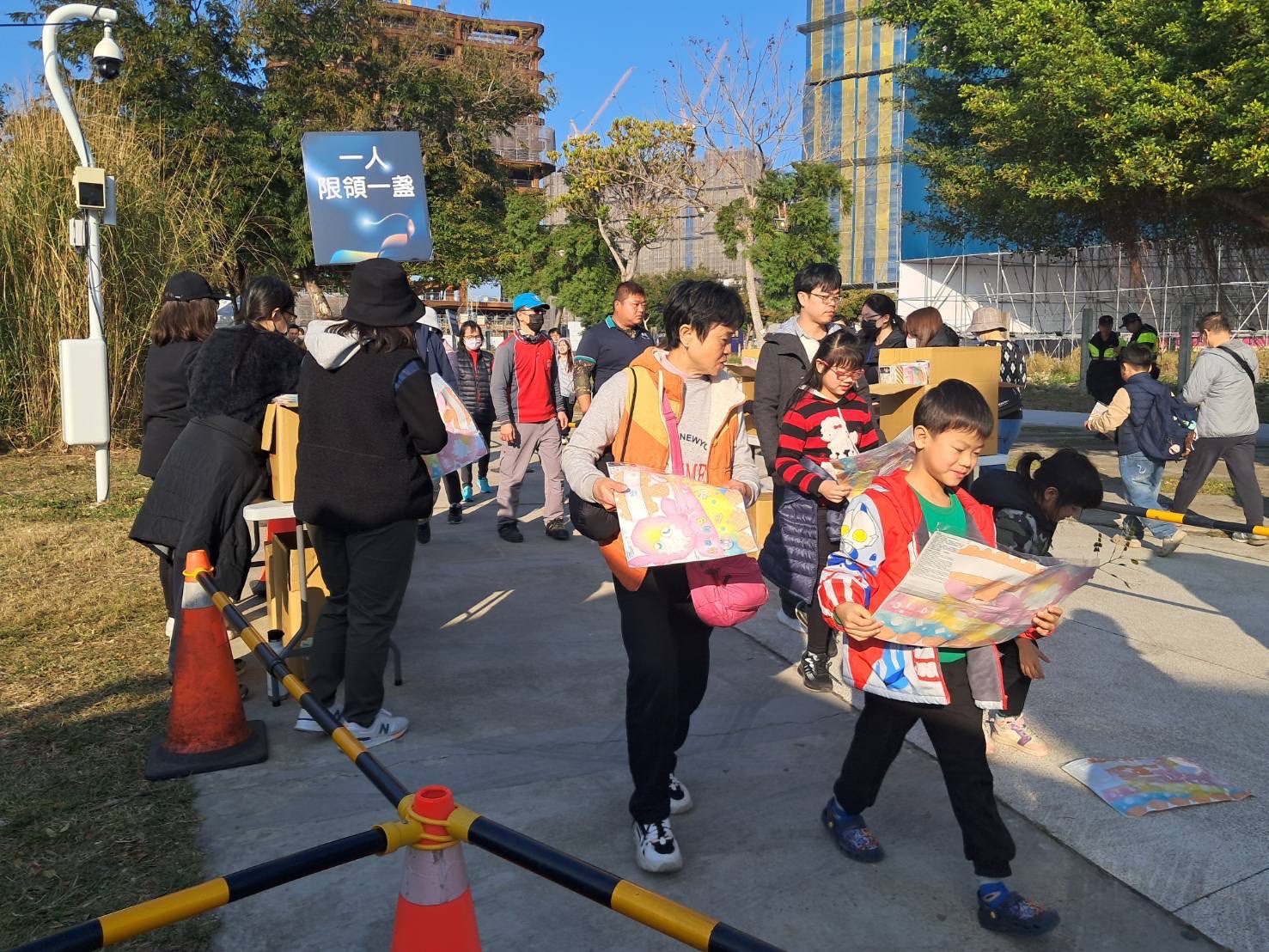 觀旅局說明,元宵節除了猜燈謎、吃湯圓,手作「小提燈」也是許多人的幸福回憶。2025年屆逢農曆蛇年,台中市府發揮創意,一改蛇類外觀不討喜的傳統印象,將提燈設計為人見人愛的「霜淇淋」造型,以充滿童趣與想像力的「甜甜蛇」萌樣,融化大小朋友的心,燈會開幕至今,每天都吸引上千人潮排隊領取,四處可見親子共摺小提燈的幸福畫面,讓元宵燈會多了一份圓滿與溫馨!