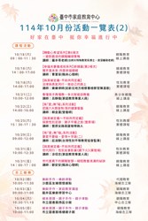 更多詳細內容洽本中心活動海報、FB及LINE公告資訊