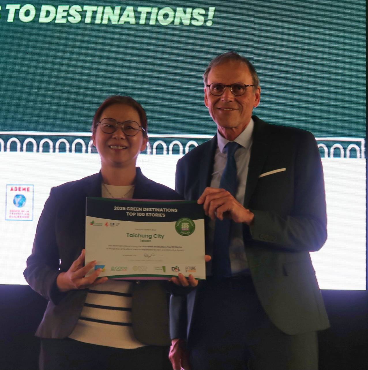 綠色旅遊目的地基金會(Green Destinations Foundation, GD)於9月28日至30日在法國奧克西塔尼舉辦「2025全球綠色目的地年會」,並頒發「2025全球百大目的地故事獎」(Green Destinations Top 100 Stories)。台中市政府觀光旅遊局以「環山獵人登山步道:重返獵人古徑、重現泰雅文化地景」脫穎而出,榮登全球百大故事,成為全國第一且唯一連續兩年獲獎的地方政府。同時,台灣味噌釀造文化館也以「在地文化成為永續旅遊的力量」,榮獲首屆「2025好旅行故事競賽」(Good Travel Stories Competition)獎項,展現公私協力推動永續的成果。