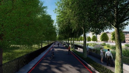 觀旅局長陳美秀表示,旱溪河岸兩側吸引許多市民散步、運動及騎乘自行車,為提升民眾通行安全,市府特別爭取經費辦理人行空間改善工程,主要施作項目包括人行道鋪面全面更新、無障礙設施改善及景觀綠美化,並於道路兩端設置「人行優先區」及導引牌面,提供兼具安全、休憩與景觀特色的友善步行環境;工程已於今年10月開工,預計明年4月完工,完工後將串聯右岸豐原大道人行空間及沿線休憩節點,並命名為「旱溪水岸阿勃樂道」,象徵金黃花海與豐原在地人文意象。