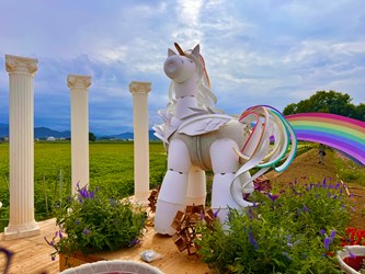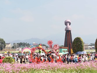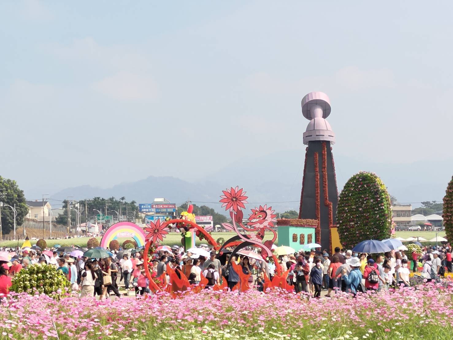 因應颱風鳳凰氣象署發布陸上警報及台中市府公布停班停課,台中國際花毯節為維護遊客及展區裝置安全,於11、12日預警性閉園,今日宣布明(13)日重新開園!園區經市府團隊及工作人員將裝置重新歸位,已全面恢復繽紛樣貌。今年以經典卡通頻道《飛天小女警》為靈感,將備受喜愛的動畫元素與花卉藝術結合,吸引大批遊客搶先入園拍照打卡。