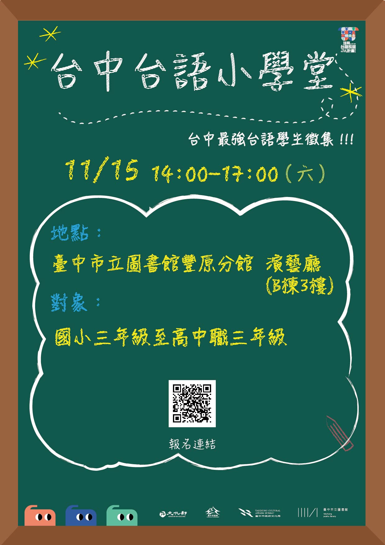 - 參加資格:國小三年級至高中職三年級學生,並須於11月14日前申請台語家庭並綁定成功(註冊時選居住地為臺中)之家庭。