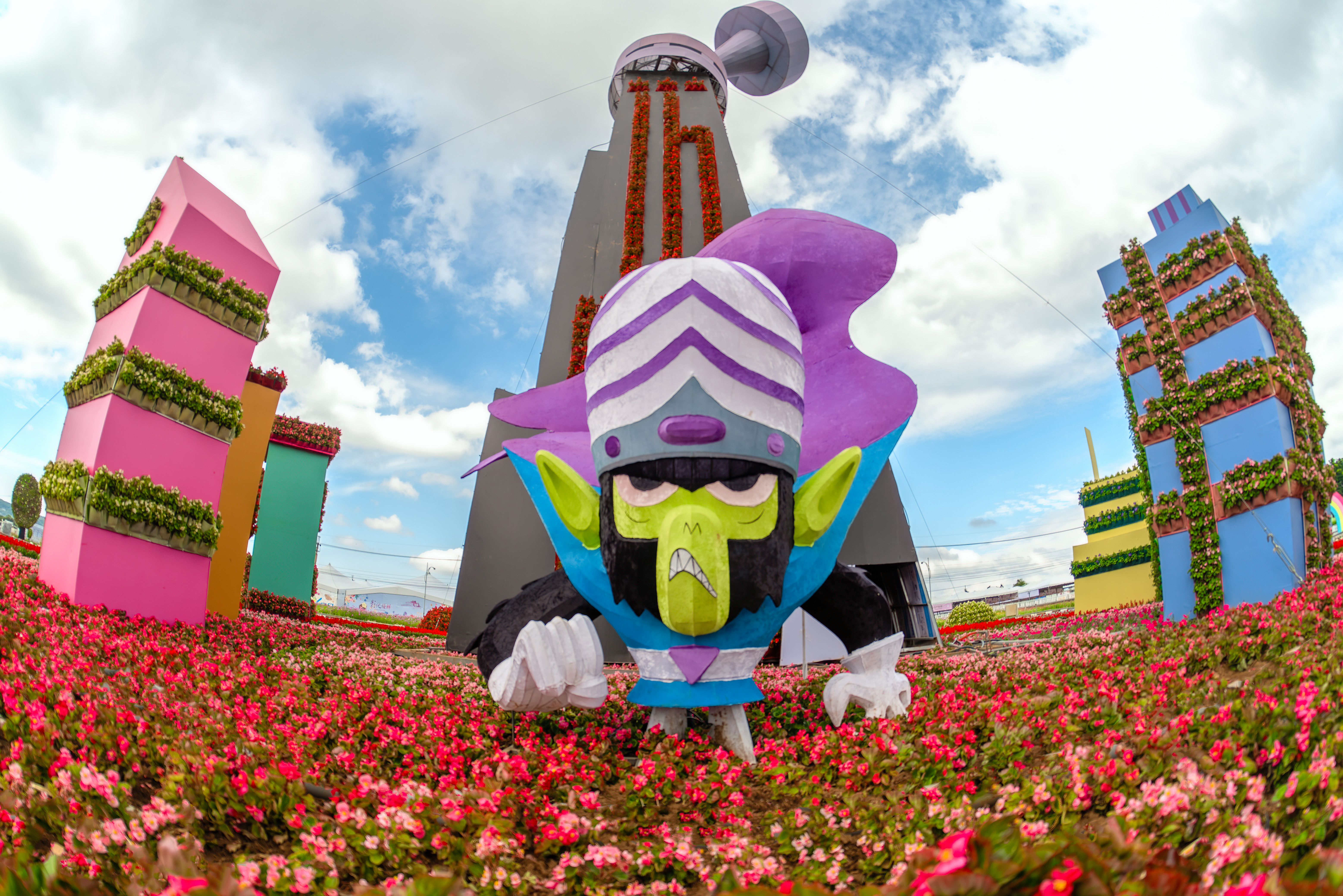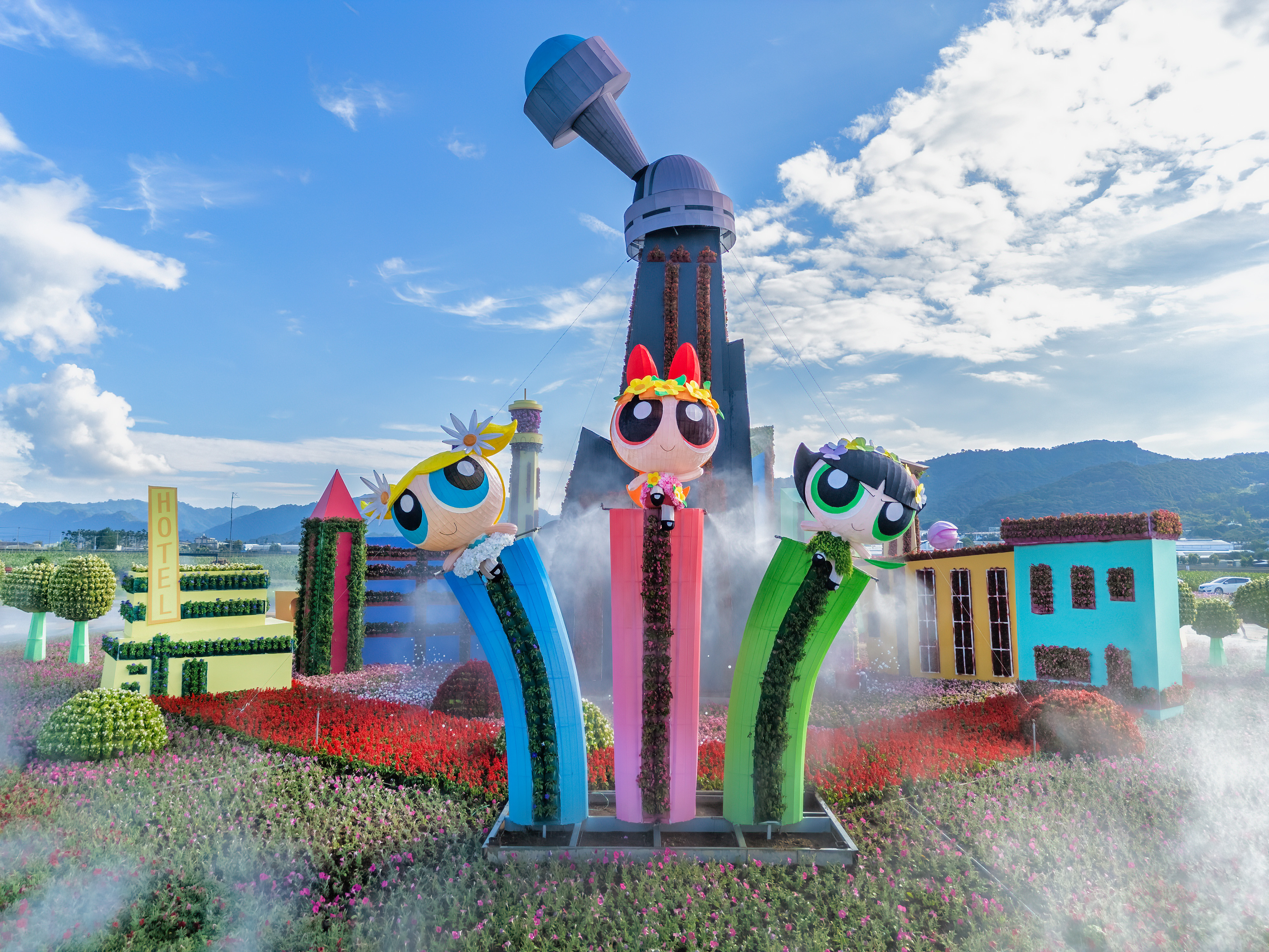 台中市政府觀旅局表示,花毯節現場共有15個裝置及角色立牌,為歷年最多;主花毯規模也是歷屆最大,高18公尺、直徑60公尺,其中以魔人啾啾的基地為裝置的最高點。每隔半小時自動展演一次的泡泡、水霧與機械動態效果,搭配盪鞦韆、甜甜圈店等裝置,處處充滿驚喜。現場呈現飛天小女警的家以及市政廳等經典場景,民眾也能與花花、泡泡、毛毛、尤教授、小鎮村市長以及會說話的狗等經典角色裝置拍照,甚至有機會看到粗暴小子、阿米巴幫、壞死幫派還有「他」等反派角色立牌,讓大小朋友玩得盡興。