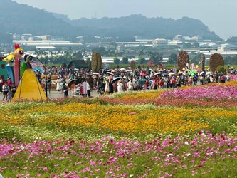 觀旅局說明,「農業部種苗改良繁殖場」統籌全部場區規劃約39.5公頃,「2025新社花海」透過玫瑰品種權展示專區展現愛與勇氣的意象,並以 6 萬株一串紅、千日紅及多樣草花鋪陳,搭配波斯菊、百日草及蕎麥等景觀作物,打造13.5公頃熱情繽紛的大地畫布。新社花海展區中更融入花盆、木棧板等材料製成的造型玩偶與藝術裝置,營造拍照打卡的視覺亮點。另,設有「金門特產」、「青農特區」及「山城農產推廣」三大展售主題,帶來農特產品與在地文化體驗。