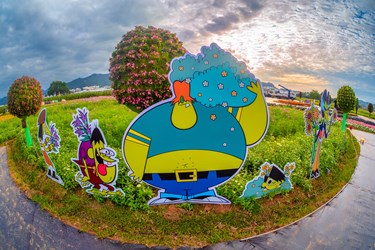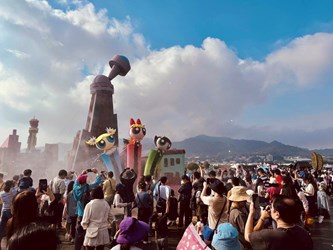 台中市政府觀旅局表示,花毯節現場共有15個裝置及角色立牌,為歷年最多;主花毯規模也是歷屆最大,高18公尺、直徑60公尺,其中以魔人啾啾的基地為裝置的最高點。每隔半小時自動展演一次的泡泡、水霧與機械動態效果,搭配盪鞦韆、甜甜圈店等裝置,處處充滿驚喜。現場呈現飛天小女警的家以及市政廳等經典場景,民眾也能與花花、泡泡、毛毛、尤教授、小鎮村市長以及會說話的狗等經典角色裝置拍照,甚至有機會看到粗暴小子、阿米巴幫、壞死幫派還有「他」等反派角色立牌,讓大小朋友玩得盡興。