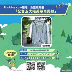 「2025台中自行車嘉年華」將於11月1日在「東勢客家文化園區」及「后里馬場」熱鬧登場!預計吸引超過1,700位市民朋友與各地遊客參與,一同騎行台中最經典的「東后豐自行車綠廊」自行車路線,沿途將行經「0蛋月台」、「大甲溪花梁鋼橋」及「九號隧道」等著名景點,而終點站「后里馬場」現場還有美食市集、在地樂團、兒童劇團與街頭藝人帶來精彩演出,中市府邀請民眾一同感受今年秋日最chill的慢旅魅力!
