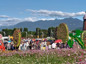 花海花毯節人氣旺、在地特產500條杏鮑菇香腸免費送 橘色波斯菊、紅色百日草、本週大爆發