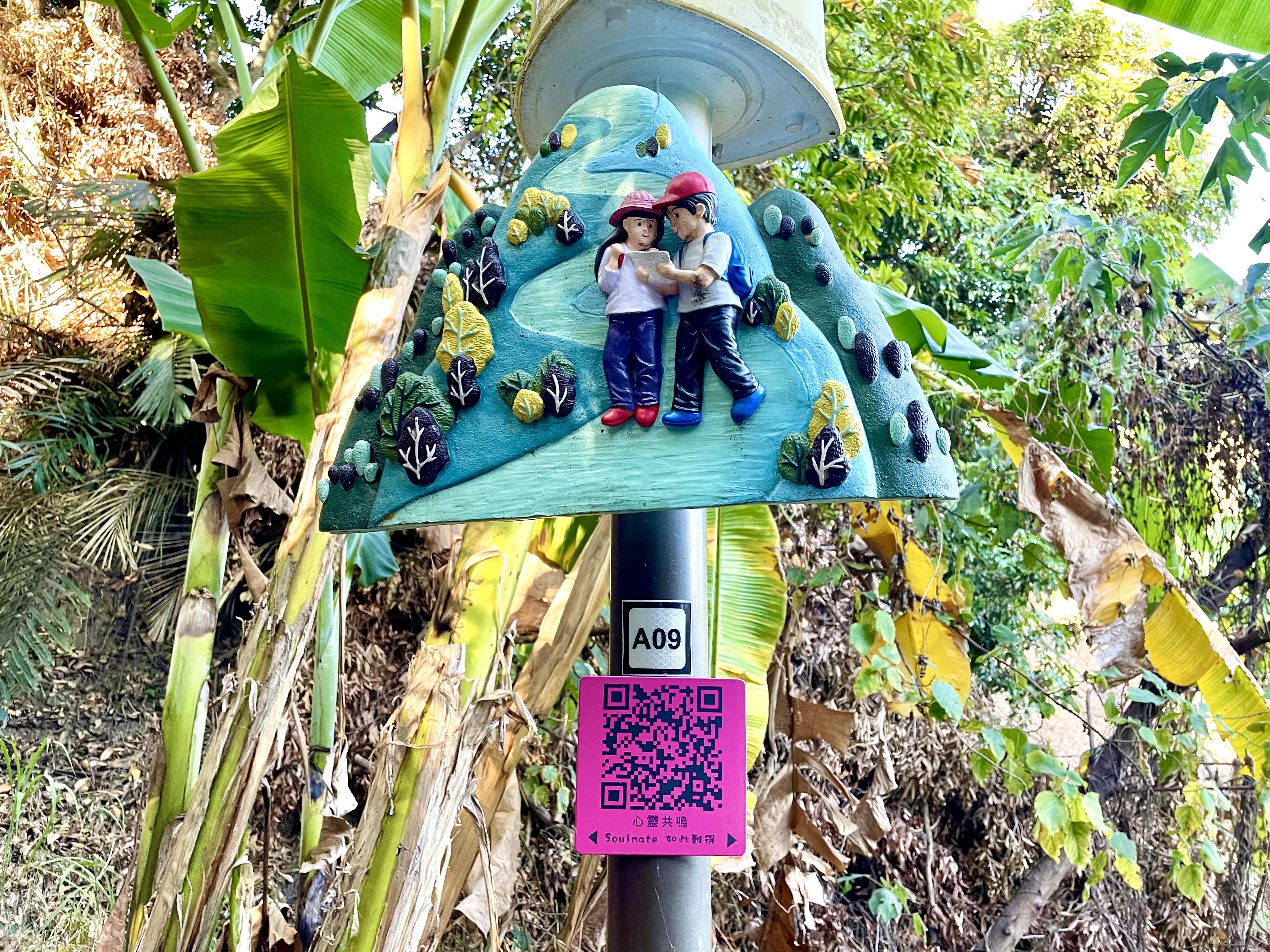 觀旅局進一步說明,為提升互動性與趣味性,步道沿線設置多處QR Code與甜蜜互動裝置,遊客可邊走邊掃描、閱讀故事內容,或留下合影紀念。來到山頂的「小狗鞦韆」時,不妨停下腳步,透過數位互動深入了解「小久」與「阿知」對未來的想像,或許也能在故事中,看見自己與家人、伴侶的影子。這不只是一趟爬山行程,更是一場與自己、與重要之人對話的心靈旅程。