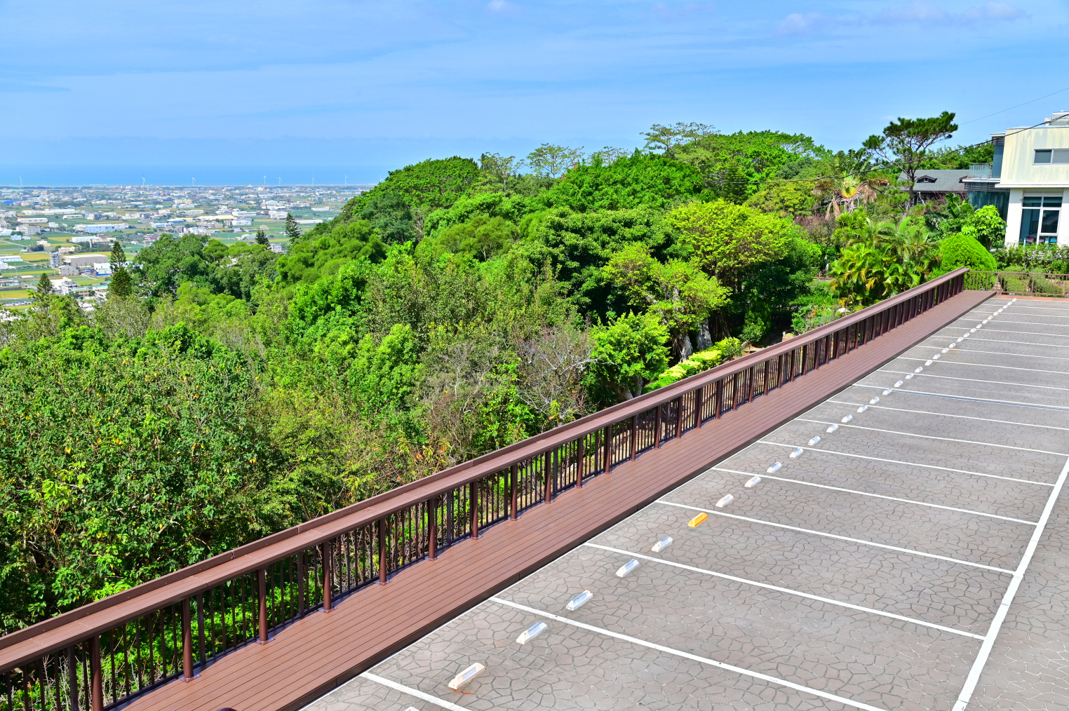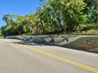 觀旅局說明,此次工程亮點包含多項景觀與設施更新,其中雕塑公園新設蜂巢造型遮陽棚,造型呼應既有鐵砧山標誌系統,不僅提供休憩遮陽功能,也成為園區新的拍照打卡亮點;成功路沿線擋土牆進行景觀美化,運用石板、卵石骨材及岩面磚等多樣建材混合拼貼,呈現頭嵙山地層特色與土壤色況,並融入灰面鵟鷹、五色鳥與狗花椒等在地生態意象,讓道路景觀更具故事性與地方辨識度;山頂新設觀景台,提供遊客駐足欣賞大甲地區市景、西海岸線、平原風光與晚霞景致;此外,成功路部分路段同步新增人行系統,優化人車動線,提升行走安全性,並強化整體景觀視覺效果。