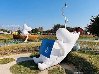 中台灣燈會與芬蘭經典 IP 「姆明一族(The Moomins)」跨界合作,將中央公園轉化為充滿北歐風情的童話森林。為融入中央公園豐富的地貌,市府順應地形在「露營時光」展區佈設許多人氣角色氣偶,更大膽嘗試在氣偶旁擺放了娃娃、書本、野餐籃、擬真麵包等療癒小物,在燈會期間完全沒有綁繩固定或用紅龍阻隔,開放民眾自由靠近合照,其中又以姆明女友歌妮的「熊馬吉」玩偶最受歡迎,不少大小朋友都會抱起來拍照,原本擔心不久後就會「被抱走」,沒想到開幕一週過去,這隻玩偶仍在原地靜靜地陪伴著歌妮,也見證了來賞燈的上百萬國人都是最萌守望者!