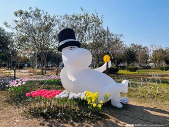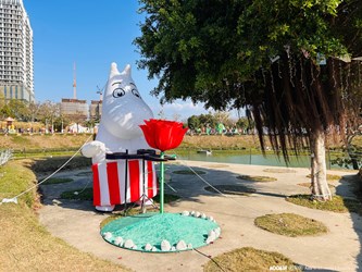 中台灣燈會與芬蘭經典 IP 「姆明一族(The Moomins)」跨界合作,將中央公園轉化為充滿北歐風情的童話森林。為融入中央公園豐富的地貌,市府順應地形在「露營時光」展區佈設許多人氣角色氣偶,更大膽嘗試在氣偶旁擺放了娃娃、書本、野餐籃、擬真麵包等療癒小物,在燈會期間完全沒有綁繩固定或用紅龍阻隔,開放民眾自由靠近合照,其中又以姆明女友歌妮的「熊馬吉」玩偶最受歡迎,不少大小朋友都會抱起來拍照,原本擔心不久後就會「被抱走」,沒想到開幕一週過去,這隻玩偶仍在原地靜靜地陪伴著歌妮,也見證了來賞燈的上百萬國人都是最萌守望者!