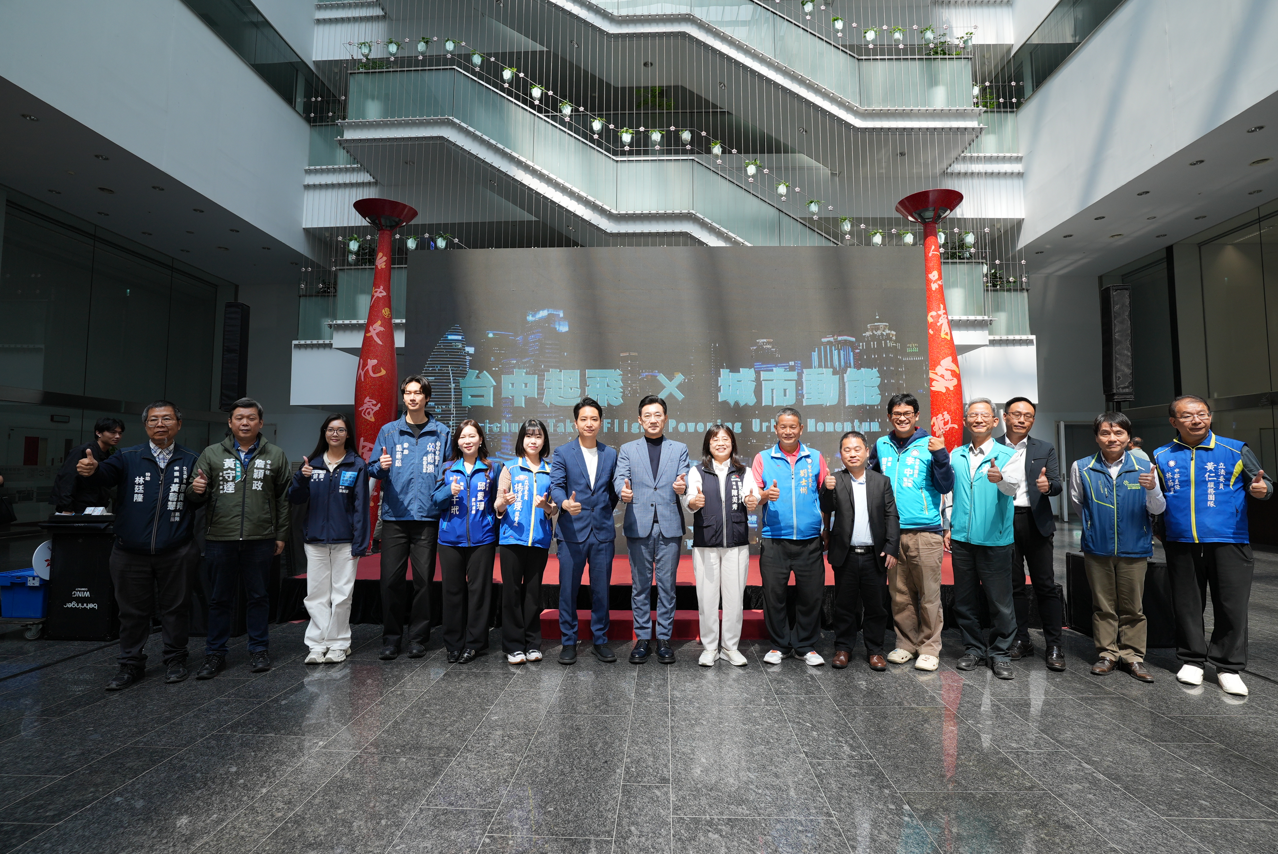 今日記者會,立法院副院長江啟臣、立法委員羅廷瑋、市議員劉士州、睿奕交通股份有限公司董事長吳國正、交通部觀光署副組長陳軒弘、交通部民用航空局台中航空站組長鍾政淋、文化局長陳佳君、社會局長廖靜芝、研究發展考核委員會副主任委員李秀香及南屯區長林秋萬等人皆出席;立法委員楊瓊瓔、黃建豪、廖偉翔、陳清龍、黃仁、市議員邱愛珊、李中、林霈涵、黃馨慧、黃守達也派代表到場共襄盛舉;航空公司、觀光公協會也到場共襄盛事。