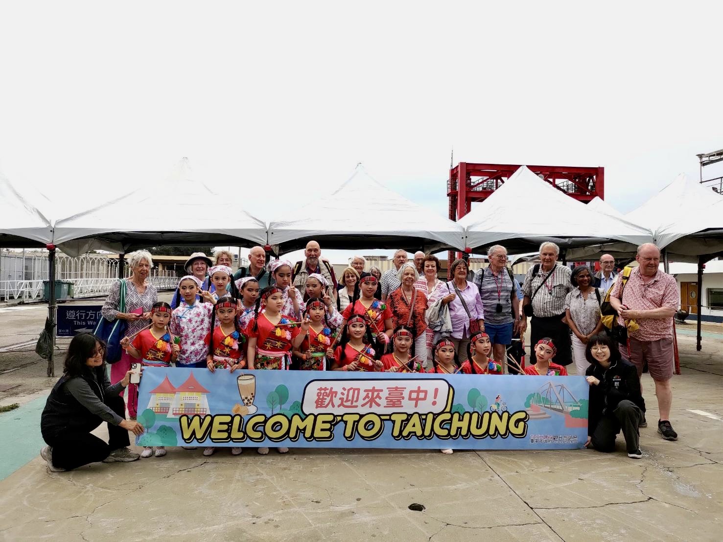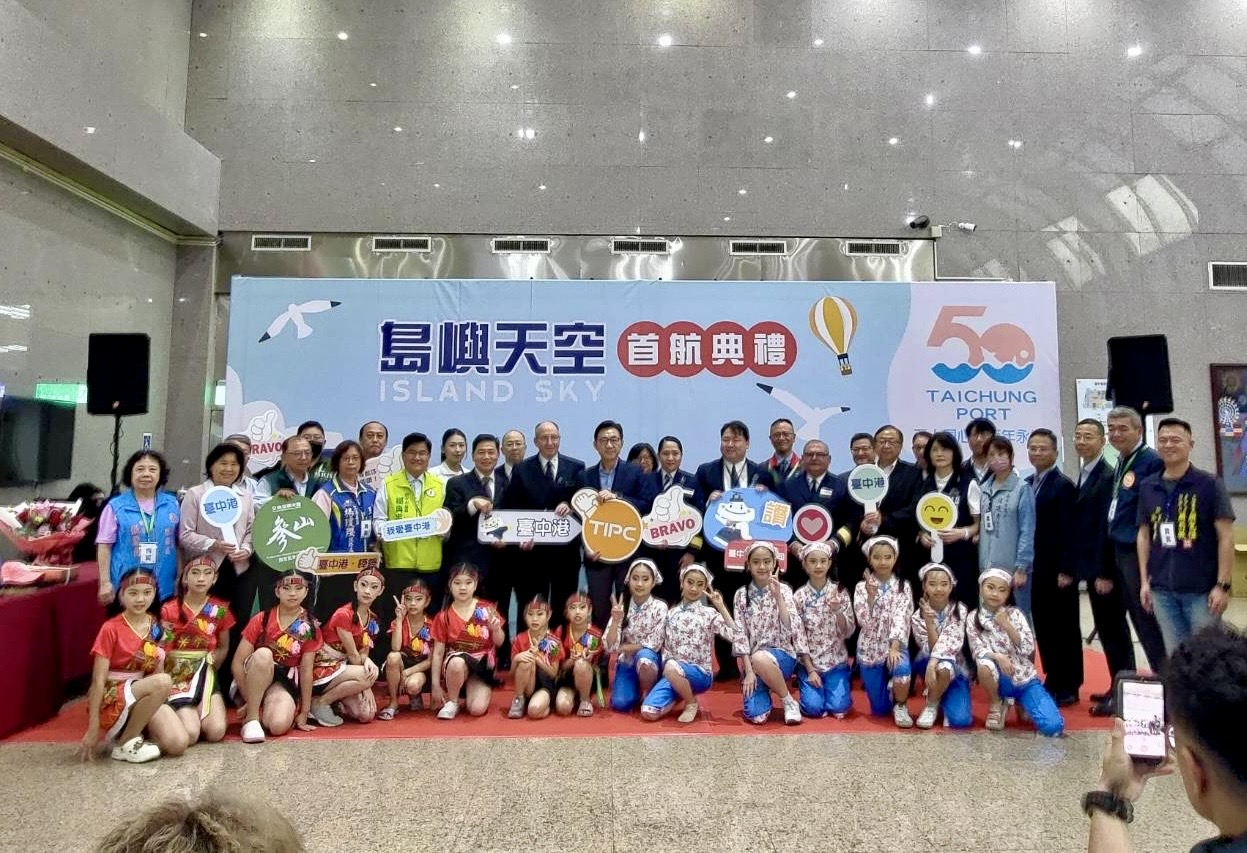 卡莉多麗旗下「島嶼天空」郵輪(ISLAND SKY) 今(7)日首航台中港!航程從香港啟德港啟航,搭載約百餘名乘客,遊客多為英國國籍,立法院副院長江啟臣、立法委員何欣純、市議員楊典忠、台中市政府觀光旅遊局蔡宗昇副局長、台中港務分公司及參山國家風景區管理處等共同齊聚於台中港旅客服務中心熱情迎接,現場並由采逸舞蹈藝術中心以充滿活力的民族舞蹈迎賓,齊心開啟台中港郵輪及海線觀光新篇章。