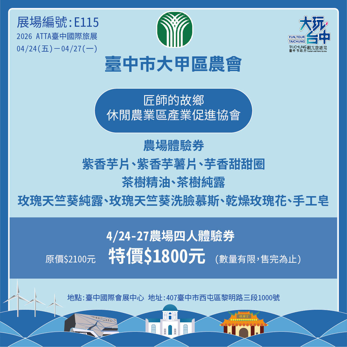 2026 ATTA旅展移師台中國際會展中心盛大登場!「大玩台中館」聚焦海線魅力